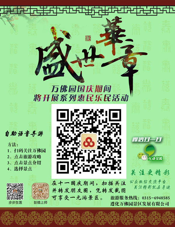 在国庆黄金周期间,转发此文章至朋友圈,凭转发截图可以享受一元游万佛园优惠活动